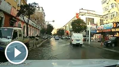 哇!路边好大的喷泉哟!免费洗车啦!