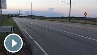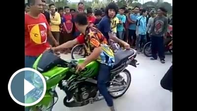 摩托车在比赛压弯侧摔后脚踏瞬间磨平