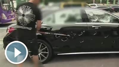 车子出问题不给解决.韩国偶吧奔驰店前怒砸S63 AMG