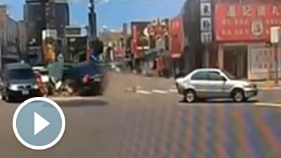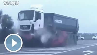 恐怖瞬间 失控轿车被大货车迎面撞碎