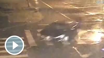 无视交通规则 夜晚摩托车闯红灯遭撞飞