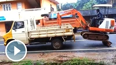 高手在民间!实拍挖掘机自助爬上卡车