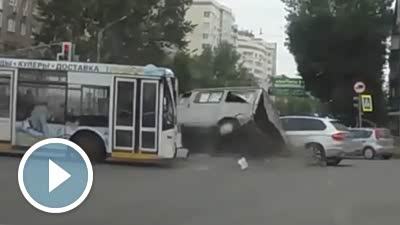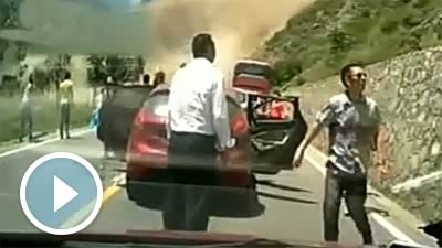 这是何必呢 小车追尾逃逸遭公车撞翻