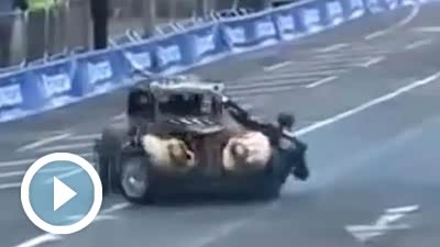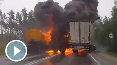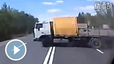 险些酿出惨剧 超载卡车急刹遭货物贯穿