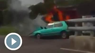 刹车不及 实拍高速猛撞鲁莽调头货车