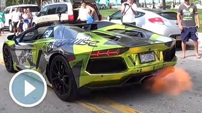 引起围观 实拍兰博基尼Aventador喷火