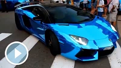 帅爆了 摩纳哥街头拍蓝色Aventador