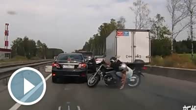 年度倒霉奖 摩托车友急刹摔倒又遭碾压