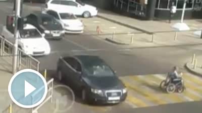 撞得不轻 老奶奶坐轮椅过马路被撞倒