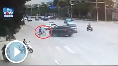 惊险不断 货车鲁莽转弯险些碾压摩友