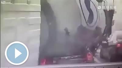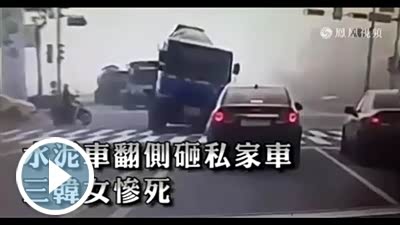 实拍水泥罐车侧翻压扁轿车 车内三女子惨死