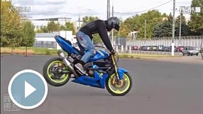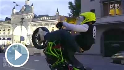 摩托车特技 慢镜演示:360度掉头再站立抬头