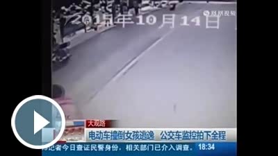 电动车撞倒女孩逃逸 公交车监控拍下全程
