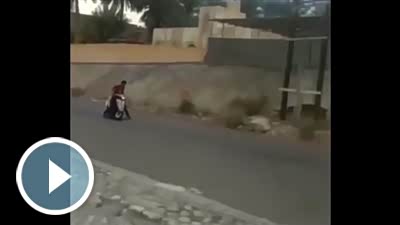 美女骑电车闯灯撞车 姿势奇葩笑死人