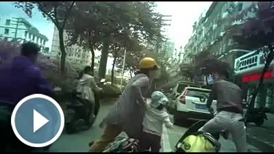 男子骑电驴碰了带小孩的母亲