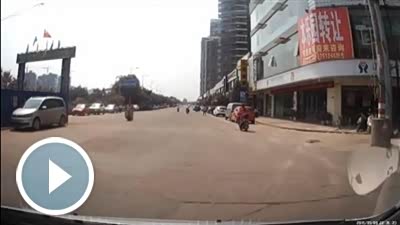 监控实拍:三轮摩托不要命逆行速度快,险被撞,非常危险。